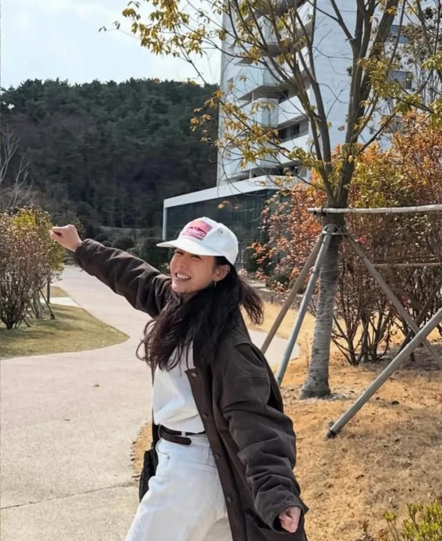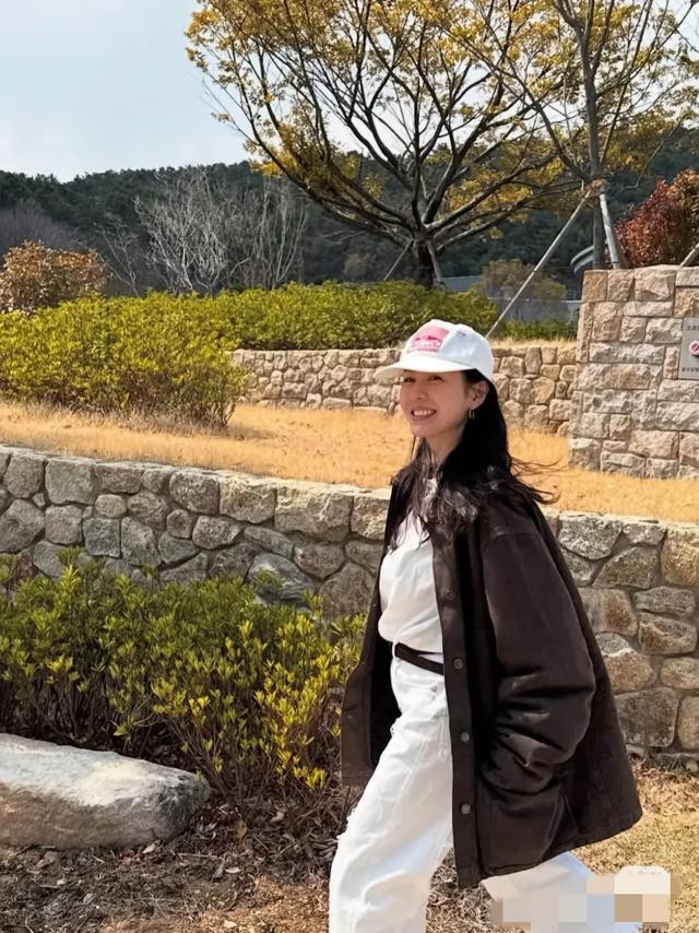 天气很好,也到了春天,孙艺珍也是和玄彬一起出门踏青,感觉孙艺珍的这组照片就是玄彬给拍的。孙艺珍穿着深褐色的夹克外套,搭配白色的直筒裤和鸭舌帽,特别休闲。